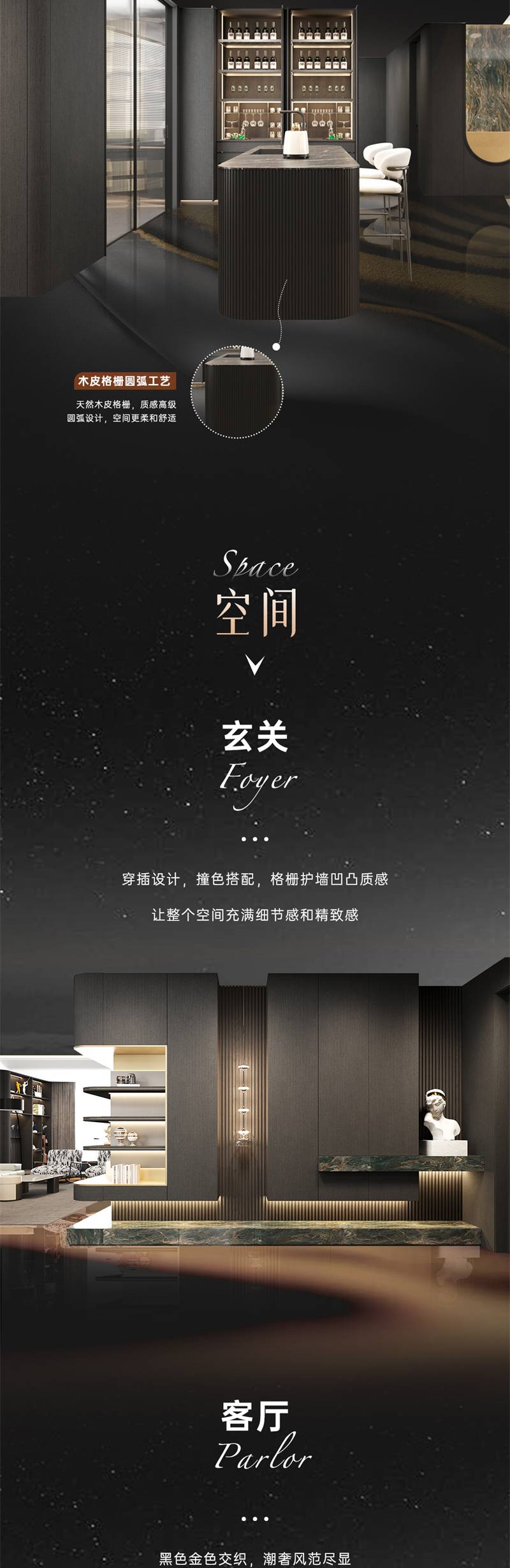 2024年新品系列,木韵 |意式极简人群定位:70~80后,企业家,公司高管;寻求高科技、高品德糊口;正视怪异性、功效性原木质感,格栅外型无主灯设想寝室+步入式衣帽间设想空间质感天然平面,带来舒服的憩息休会