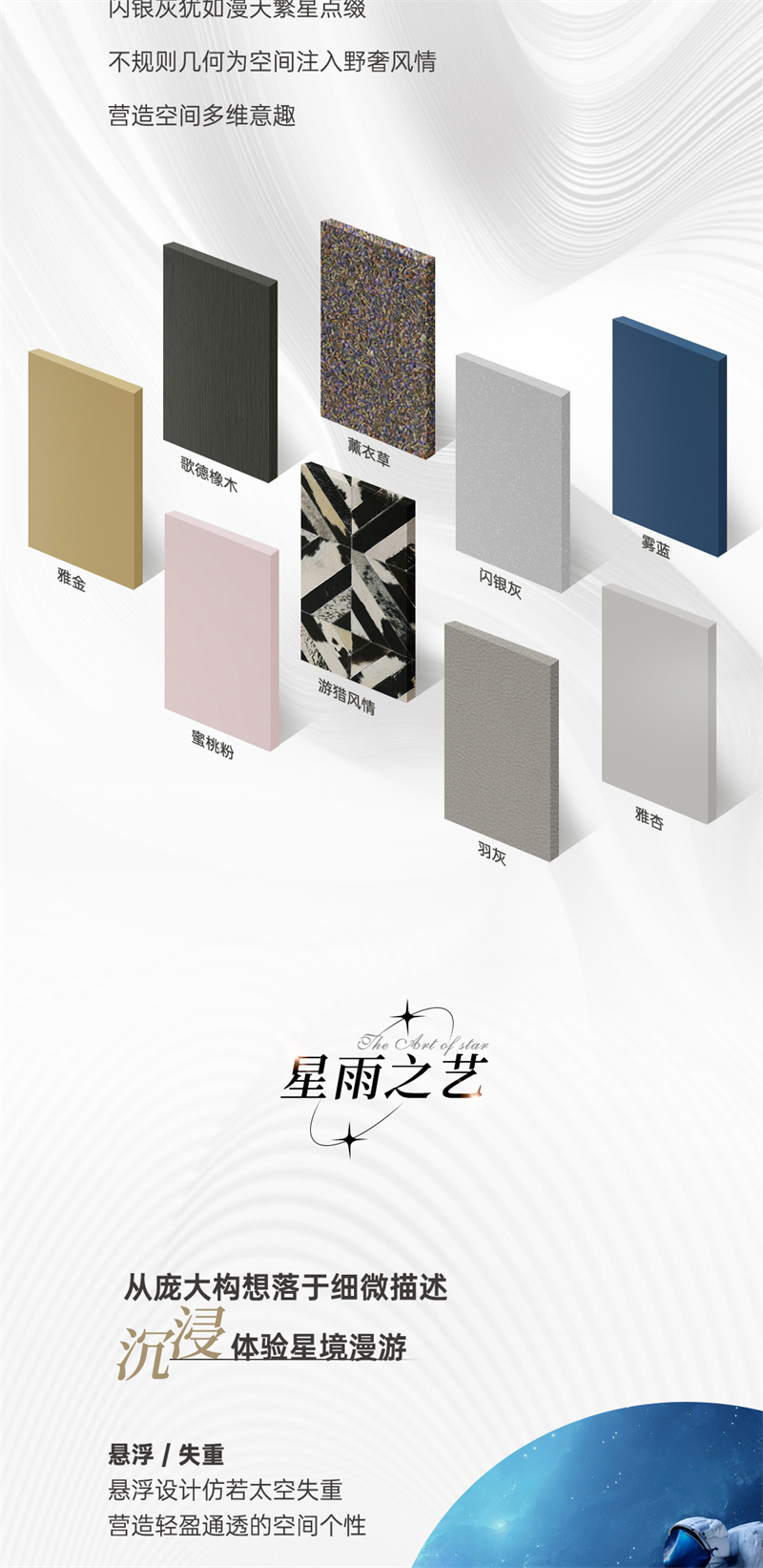 2024年新品系列,星雨 |雅奢气概 该系列产物接纳温和的色采搭配和浪漫的元素装点,打造温馨浪漫的家居空气。闲在寝室:归纳高端(dua❀n)人居雅奢糊(hu)口 ,沉醉精智寝室空间(jian),畅享(xiang)居家典(dian)礼感(gan),将糊(hu)口温馨与今(jin)世美🌌学邃密度融会