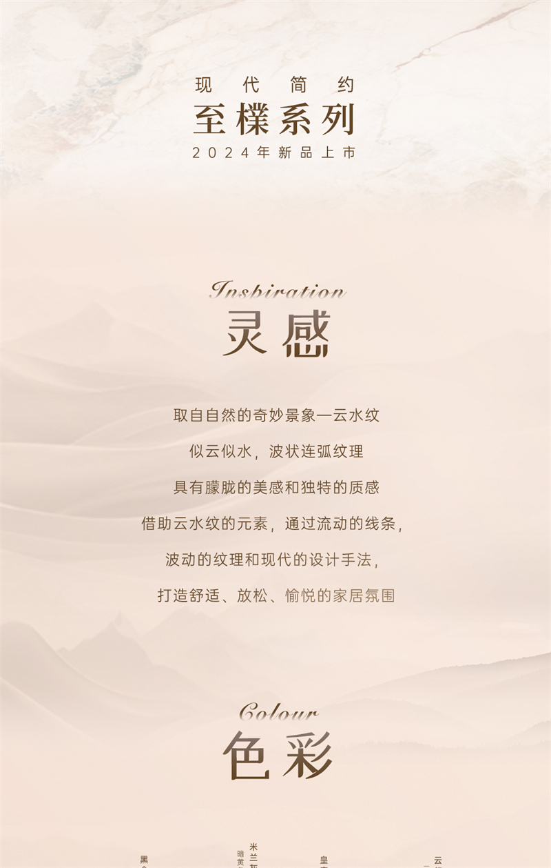 2024年新品系列,至檏 |古代繁复气概 借(jie)助云(yun)水纹(wen)的(de)元素,经由过程活动♋(dong)的(de)线条,动(dong)摇的(de)纹(wen)理(li)和(he)古代(dai)的(de)设想手(shou)段,打(da)造温馨、抓紧、愉悦的(de)家居💎空气。