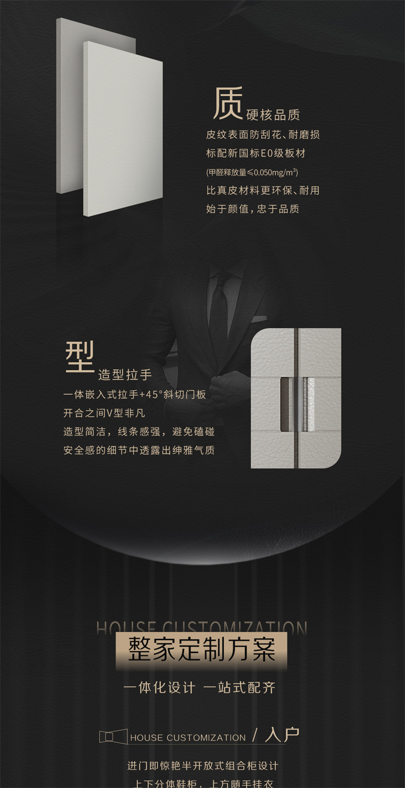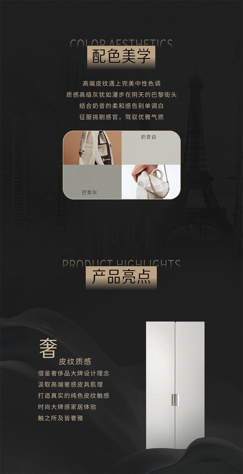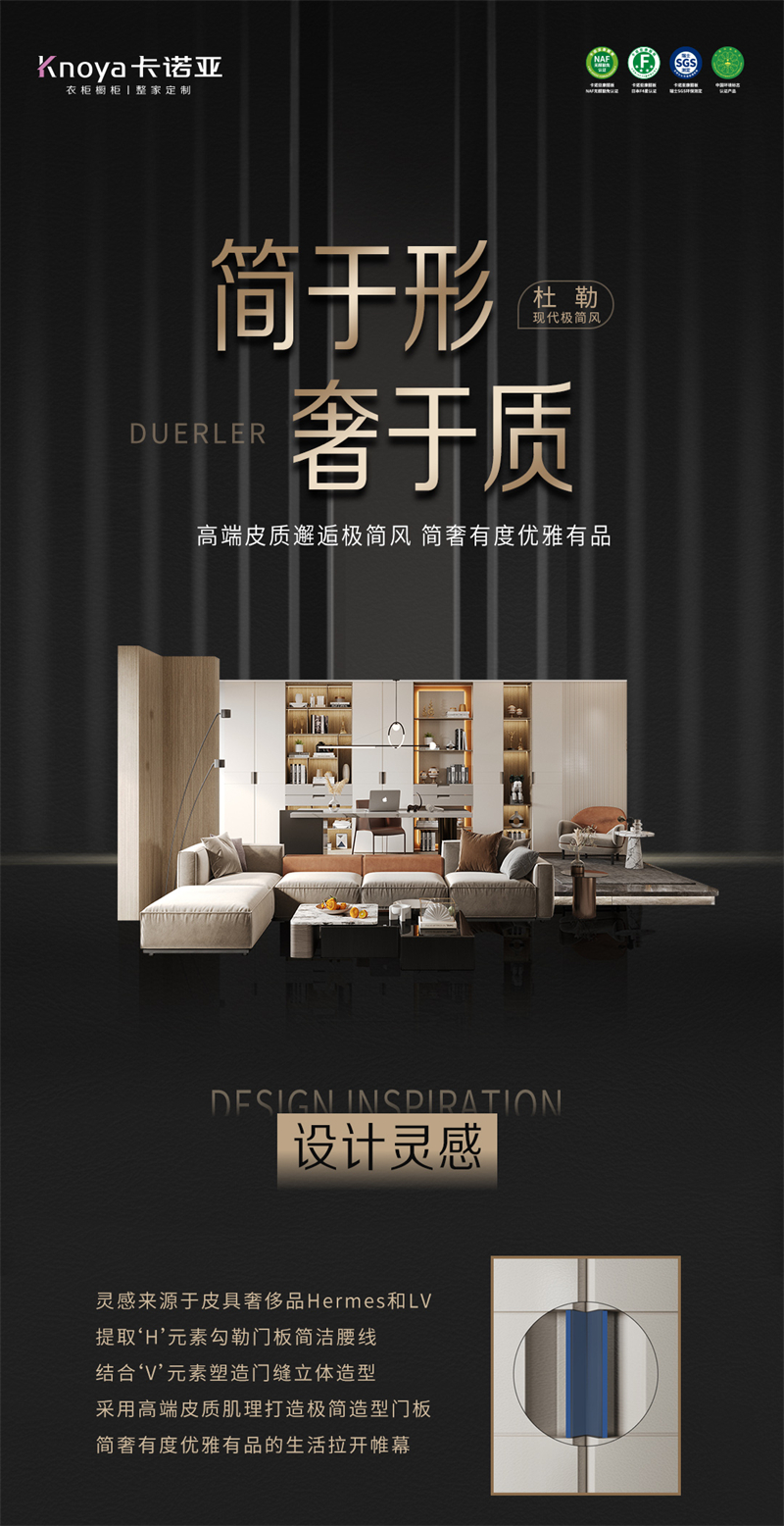 2022年新品系列,杜勒 |古代极简气概高端皮质相逢极简风 简奢有度文雅有品灵感来(lai)历于皮(pi)具豪侈品(pin)Hermes和LV 提取(qu)“H’元素勾画(hua)门板简(jian)练腰线(xian) 连系'V'元素塑造(zao)门缝(feng)平面外型(xing) 接纳(na)高端皮(pi)质肌(ji)理打造(za𝓡o)极简(jian)外型(xing)门板 简(jian)奢有度文雅有品(pin)的糊口(kou)拉(la)开帷(wei)幕