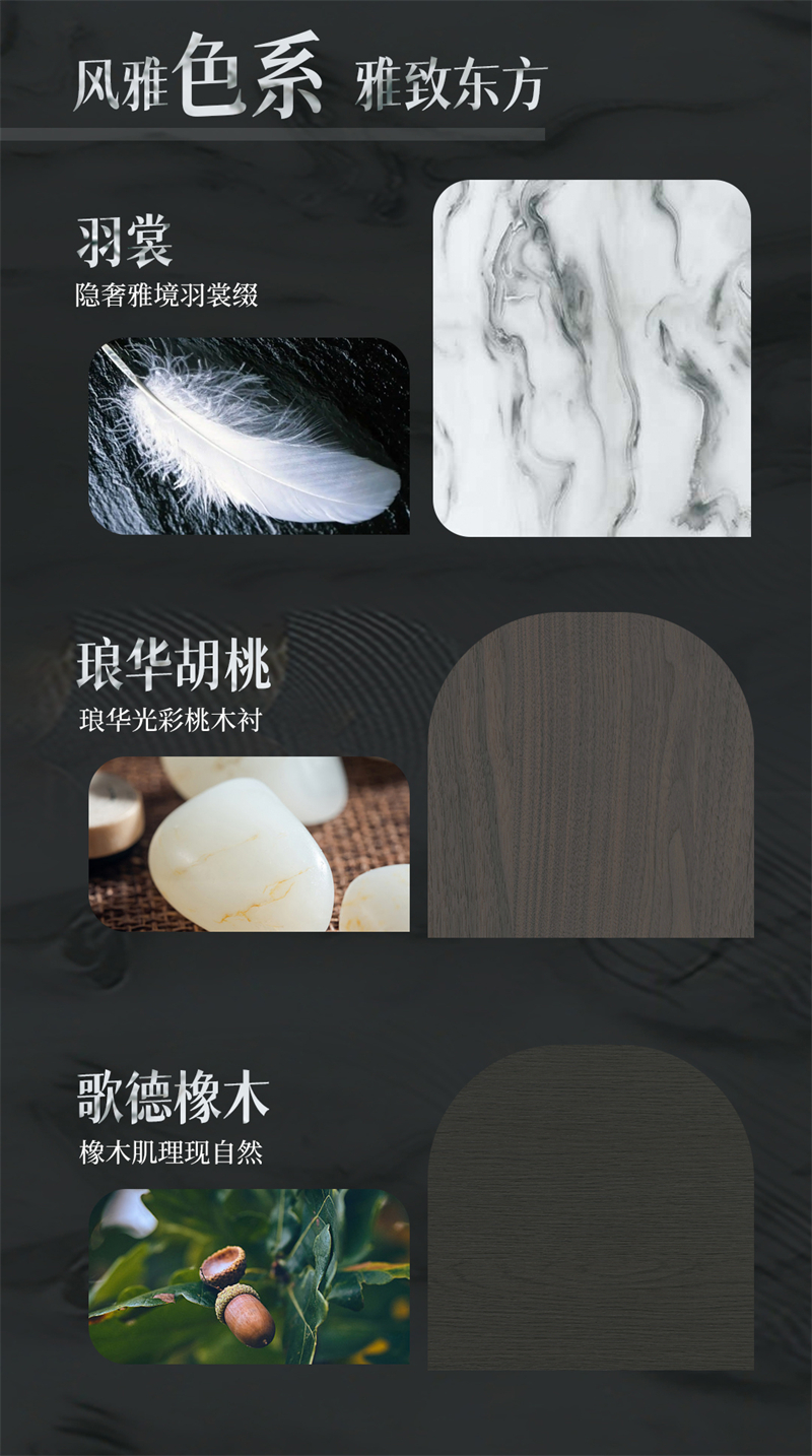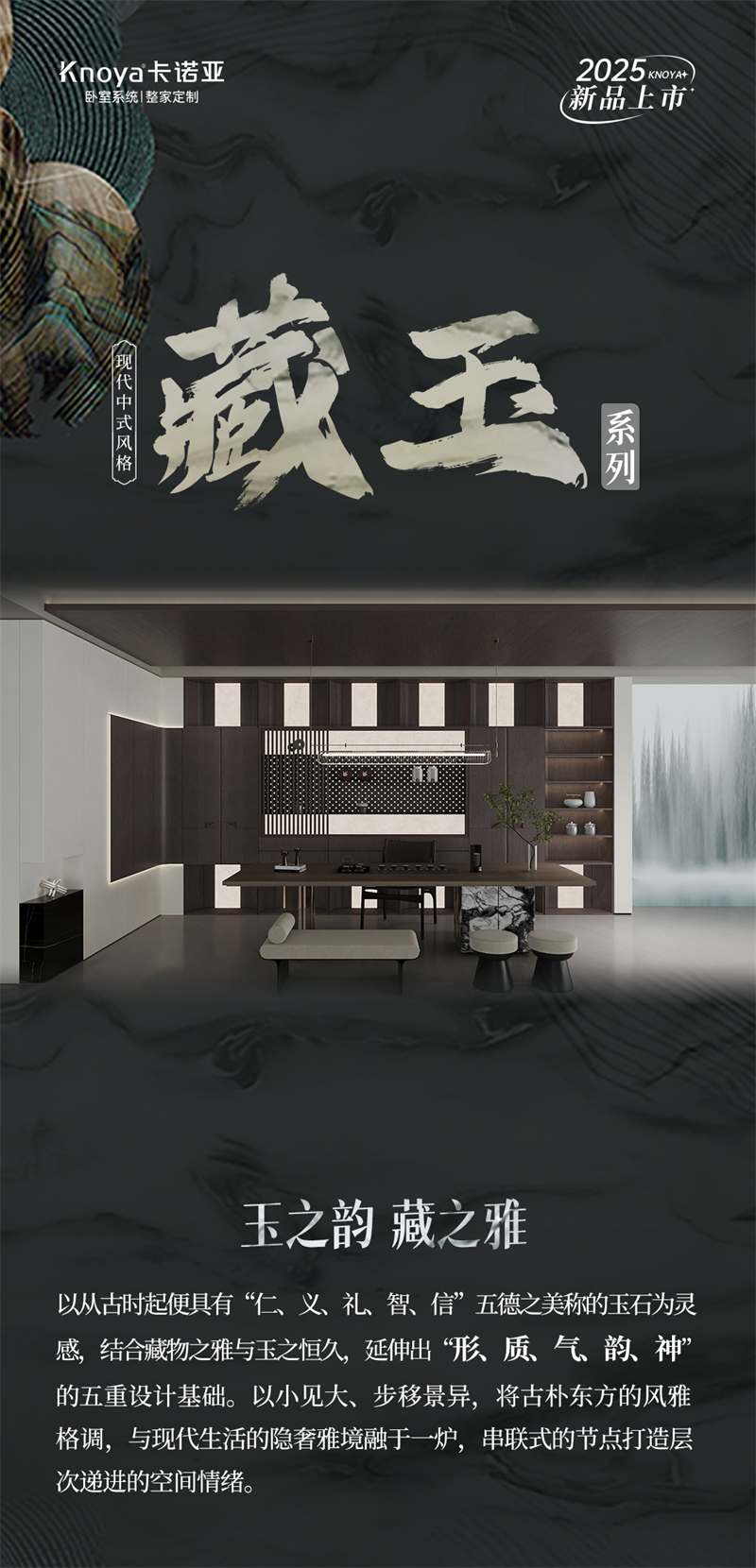 2025年新品系列,藏玉系列 |古代中式气概藏玉系列以“形、质、气、韵、神”的五重境地,以小见大、步移景异,串连式的节点打造条理递进的空间情感。从归家礼节、空间款式和设想细节等多个维度,建构礼序雅境。市场定位:旗舰款产物,合适35至55岁企业高管精英