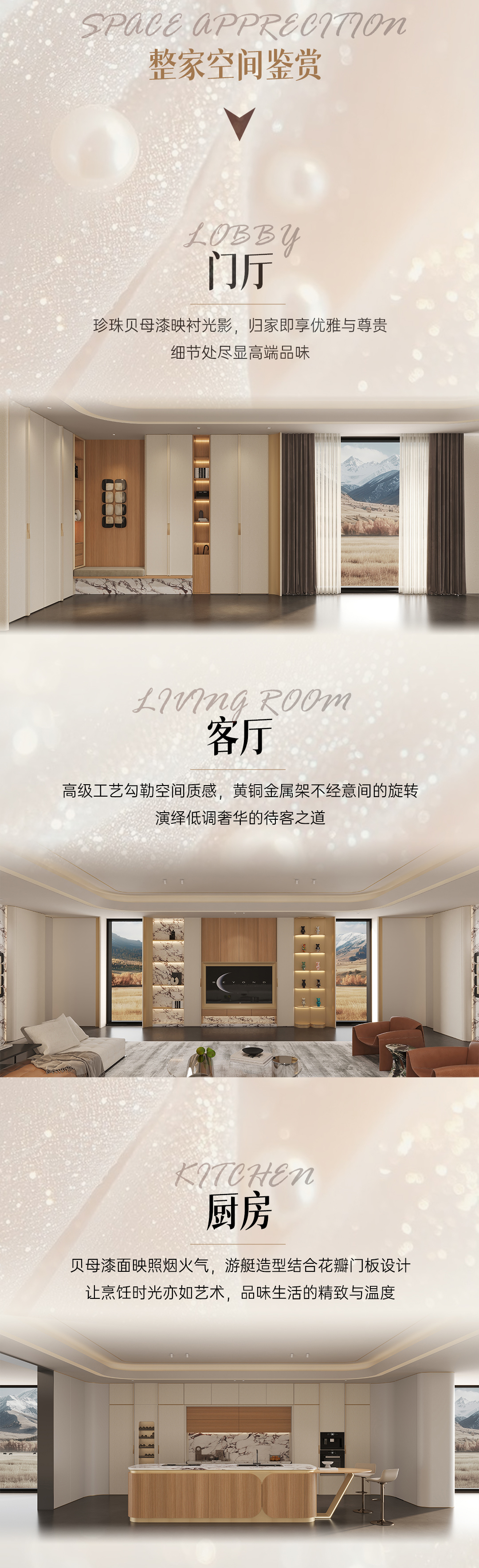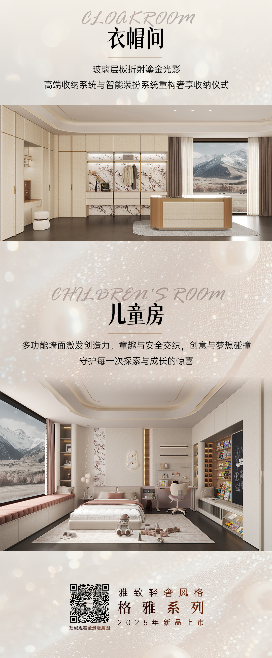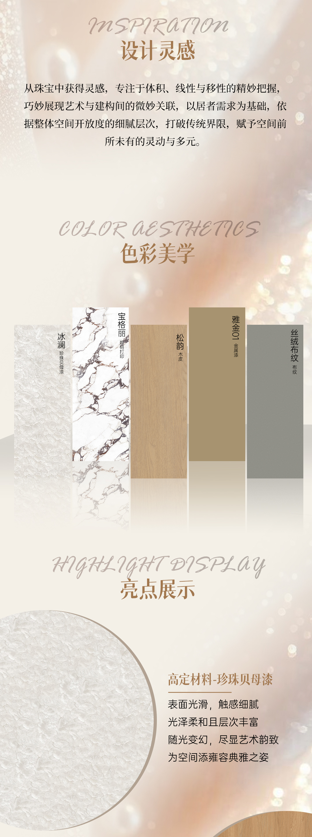 2025年新品系列,格雅系列 |高雅轻奢气概从珠宝中取得灵感,专一于体积、线性与移性的精巧掌握,奇妙揭示艺术与建构间的奥妙接洽关系,以居者需要为根本,根据全体空间开放度的细致条理,突破传统边界,付与空间史无前例的灵活与多元。人(ren)群定(ding)位:30至45岁艺术家家庭,对(dui)糊(hu)口品德(de)持(chi)有极致(⛎zhi)寻ܫ(xun)求