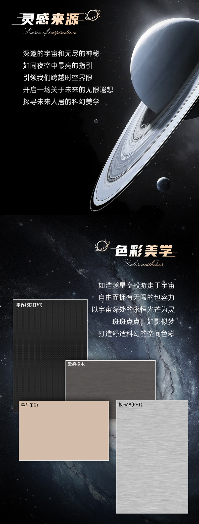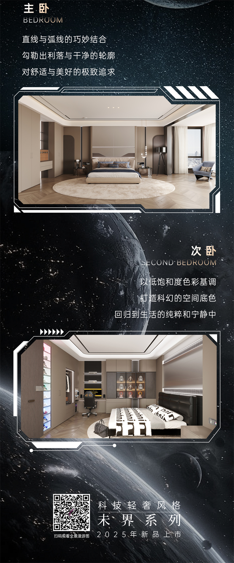 以科技青年(航天设想师、汽车工程师、科技创业者等)职业特征为焦点,融入航天元素与汽车模子揭示,借助流利线条、科技灯光,搭配智能家居,营建将来感空气,知足对科幻的联想,完成科技与糊口的融会,揭示摸索精力。