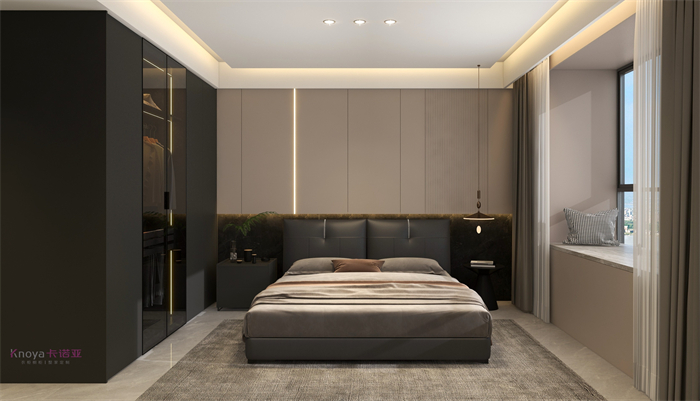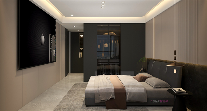 本案业主更重视与家人们的空间感情交换。户型墙体的拆改 使规划流线更顺畅,更锲合业主的需要。玄关客餐厅接纳门墙柜一体化设想,化繁为简。鞋柜交叉式设想既有储物功效又有美感。哑光岩板嵌入式电视背景+深色系墙板隐形门,延长全部空间,壁炉和金属套格更显高等感,雀跃大气。内嵌式酒柜包冰箱管线机,兼具储物、装潢、颜值一体。餐桌岛台做了错位式设想,即贴合了业主的平常家居需要,又与全体空间色系相照应。寝室无主灯的设想还具有多种情形形式,进一步晋升了寝室的空气休会。