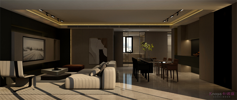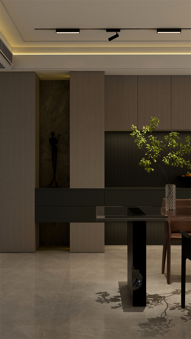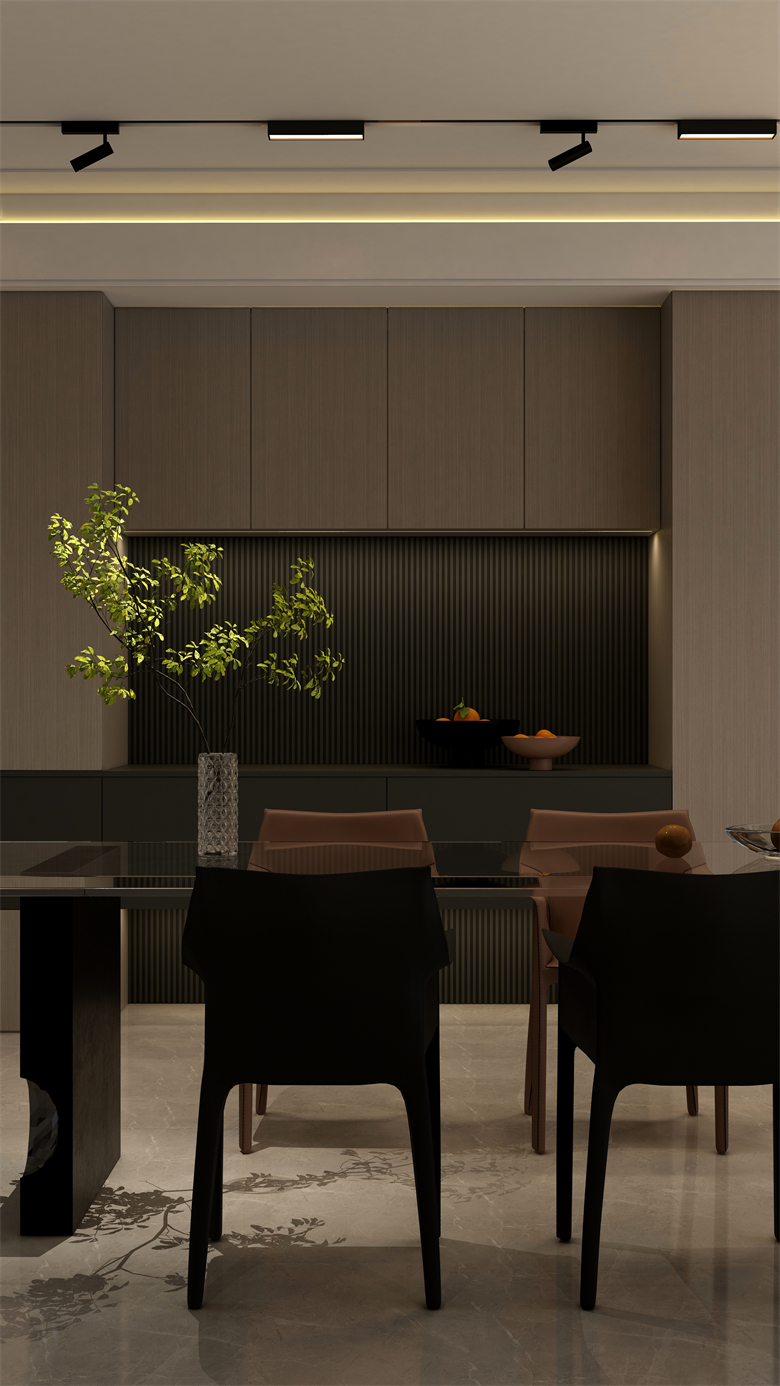 本案设想环绕业主意式极简气概的需要,主色调黑、白、灰、咖,多操纵金属色、木色、石材做出变更,装点少许素净色。柜墙门一体化,接纳交叉、进退等设想手段,共同灯光使空间简练又颇具设想美感。意式极简气概删繁就简,阔别统统浮华和不适用,从糊口实质动身,以极简的设想归纳出最实质的轻奢美学。设想理念:咱们要晓得,设想师不是给业主设想糊口的习气,而是设想习气的糊口。整家视界 全案糊口|第六届卡诺亚整家设想精英联赛