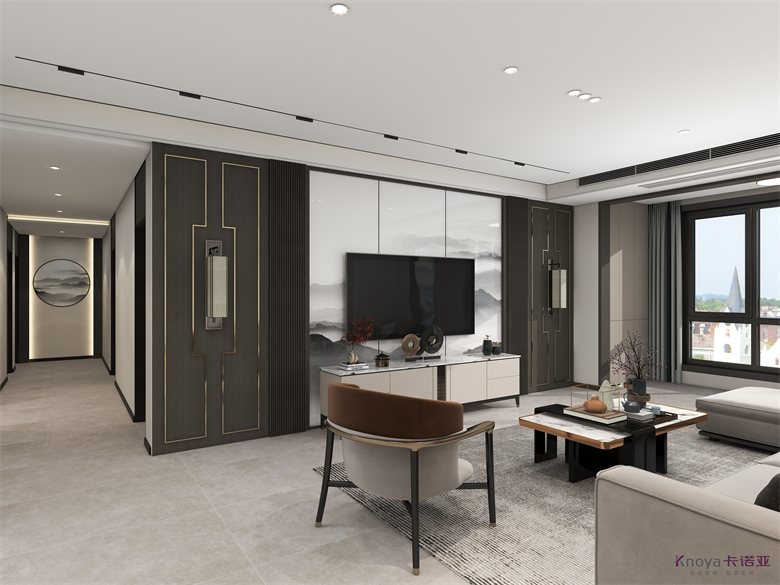 设想理念:新中式气概,一种走在中高真个室内装修气概设想,更重视糊口的质感与档次,所营建出的富有文明秘闻与艺术色采的家居空间,更能知足一些专业请求较高的人群。