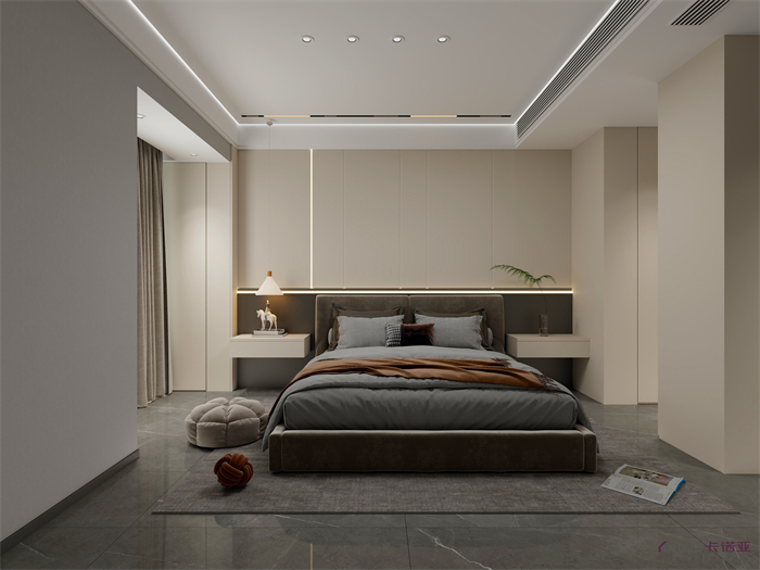 轻奢气概的室内装修首要以繁复气概为根本,以简练结实的直线条为元素,经由过程一些精美的软装元素来凸显质感,同时也稀释了衡宇的功效与细节,从而揭示精美的糊口体例。