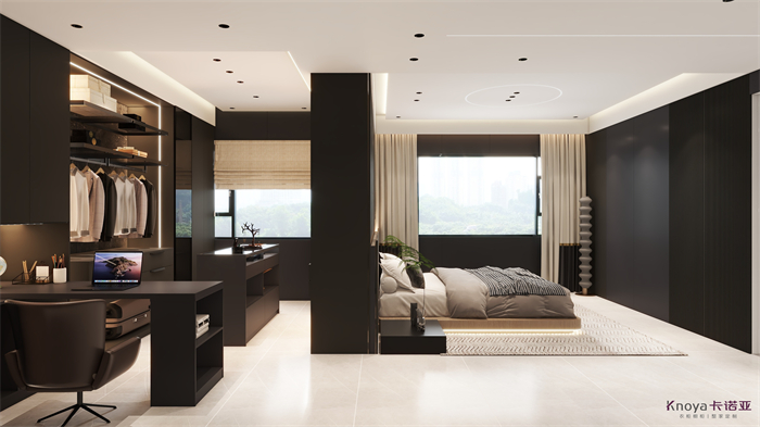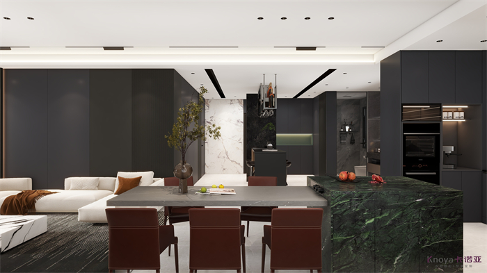 作品简介:全体以古代为主,入户地区和酒水吧地区做环抱型设想,全体更通透空间,客堂背景墙应用了叠级的手段弱化承重柱,沙发背景一样接纳叠级做到照应的设想,主卧撤除隔邻寝室做主卧步入式衣帽间,增添了主卧的灵活和空间,儿童房接纳近似榻榻米手段设想,全体做收纳储物进修文娱空间,厨房做开放式厨房,全体色系为黑灰,天花吊顶接纳无主灯加智能灯光,全体空间和空气温馨度拉满。