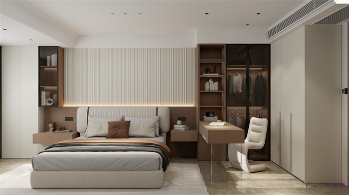 作品简介:色采上以天然敞亮的色彩为主要挑选,如米色、原木色、米红色、灰色和米黄色等。在资料的挑选上,天然元素如木料、铜、纯棉和手工编织的织物是罕见的资料。全体气概上旨在,夹杂纹理和面料可以或许加强房间的质感和视觉结果。使这个空间显现出来多样化的,容纳性强的空间空气。在精美低奢的条件下代入一些糊口美学的魅力。繁复、低调且时髦是其特色。